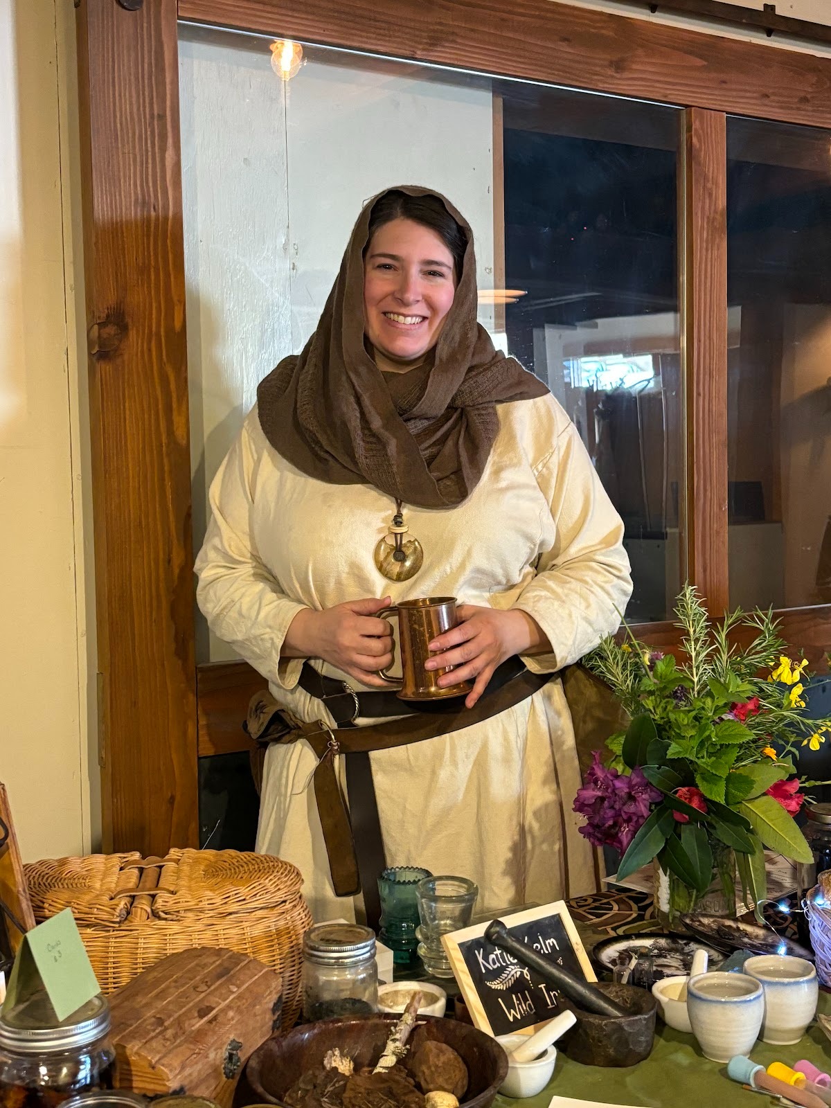 Muirenn inghean Uí Cléirigh is an 11th century Connacht (central west coast Irish) Flaith (Noble), who married Eoghan from a neighboring clan. She and her family reside on the crannog (Fortified Island Home) that his fine (clan) built up over the generations. She spends her days raising her children, cattle, and kitchen garden as well as foraging for food, medicine and materials for their home and art. If time allows, she trades pigment supplies at the 300 year old Cong Monastery.